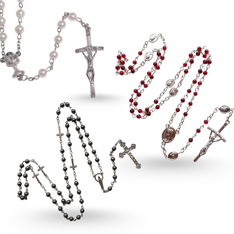 The rosary is a timeless prayer companion and a powerful expression of devotion in the Catholic faith. Each bead guides the faithful through meditations on the life of Christ and the intercession of Our Lady, offering comfort, peace, and spiritual strength. Whether prayed daily, gifted for a special occasion, or kept close as a reminder of faith, the rosary serves as a meaningful connection to prayer and reflection. Our rosaries are carefully crafted with attention to detail, featuring quality beads and a crucifix joined with a centrepiece. They are suitable for personal devotion, use in communal prayer, or as thoughtful gifts for sacraments such as baptisms, first communions, confirmations, weddings, and other special occasions.